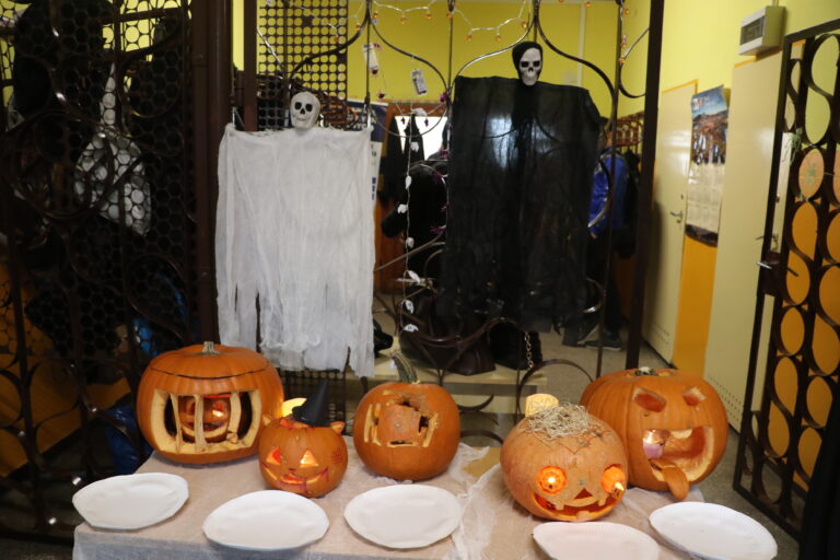 W naszej szkole obchodziliśmy Halloween w wyjątkowej atmosferze! Korytarze ozdobiono dyniami, nietoperzami i pajęczynami, a